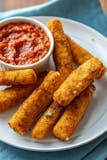 6 PIECES BATTERED FRIED PICKLE SPEARS SERVED WITH RANCH DIP.